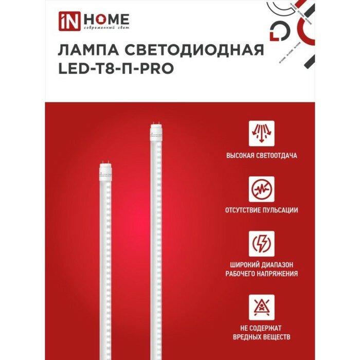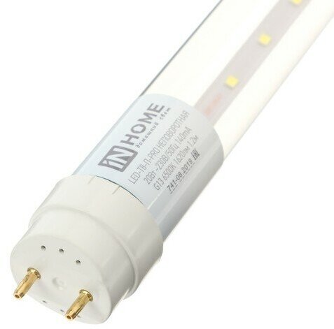 Отзывы на Лампа светодиодная LED-T8-П-PRO 20Вт трубчатая с двухсторонним цоколем прозрачная 6500К холод. бел. G13 2000лм 230В 1200мм неповоротн. IN HOME 4690612031002
