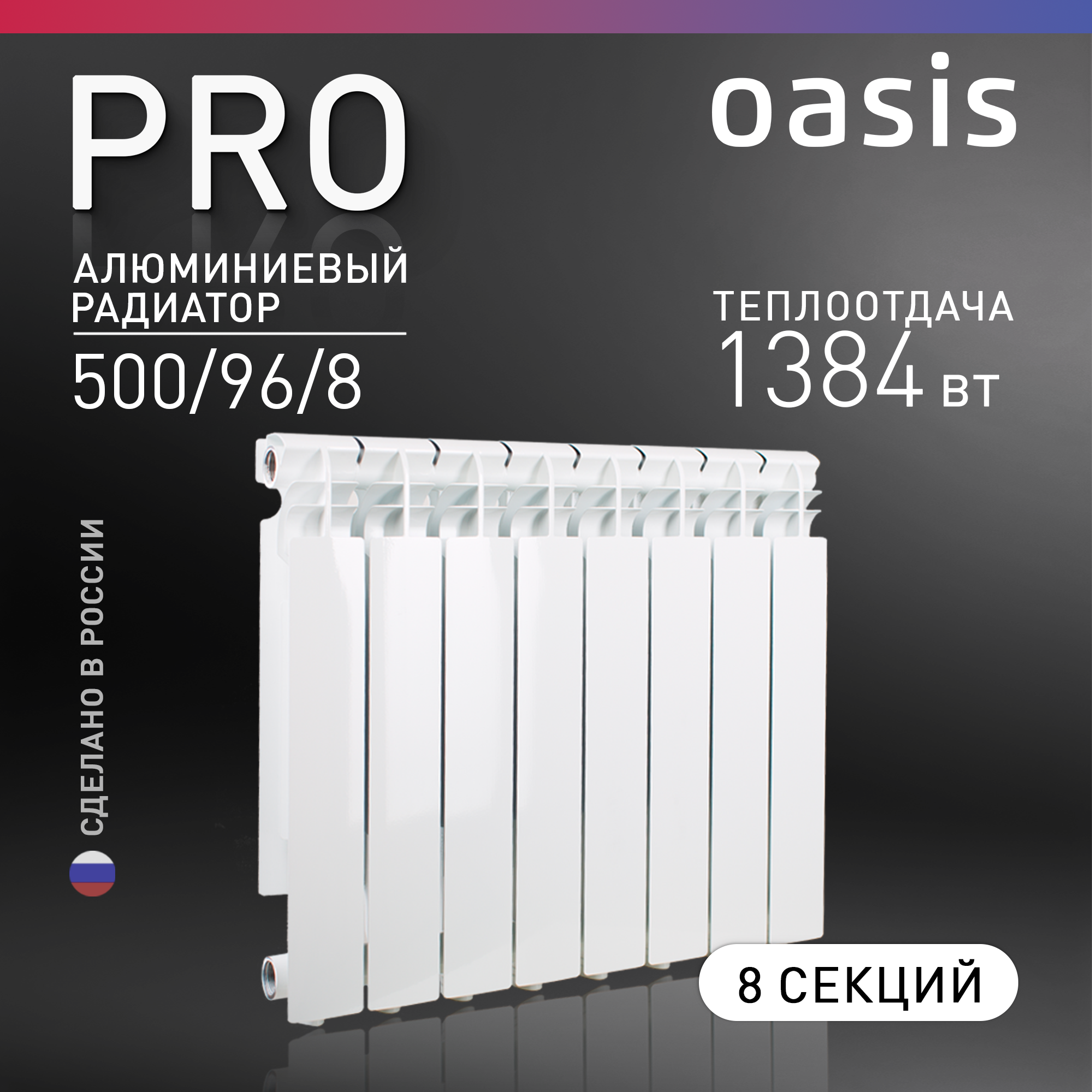 Радиатор алюминиевый литой OASIS PRO 8 секций, 500/96/8 (Россия)