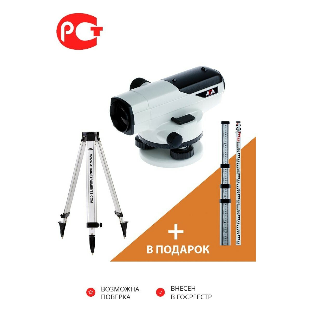 Нивелир оптический ADA PROF X32 штатив Light Рейка Staff5 информация: