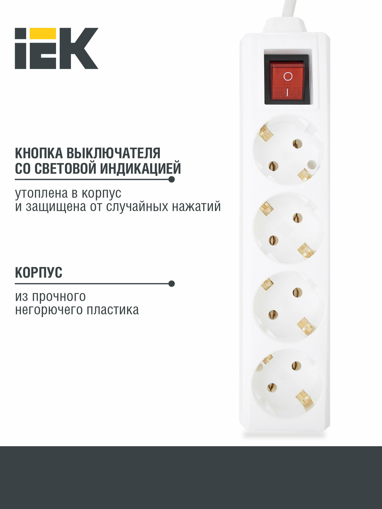 Удлинитель Iek У04К-выкл. 4 места 2P+PE/1,5 метра 3х1мм2 16А/250, WYP10-16-04-01-ZK-17 800 ₽