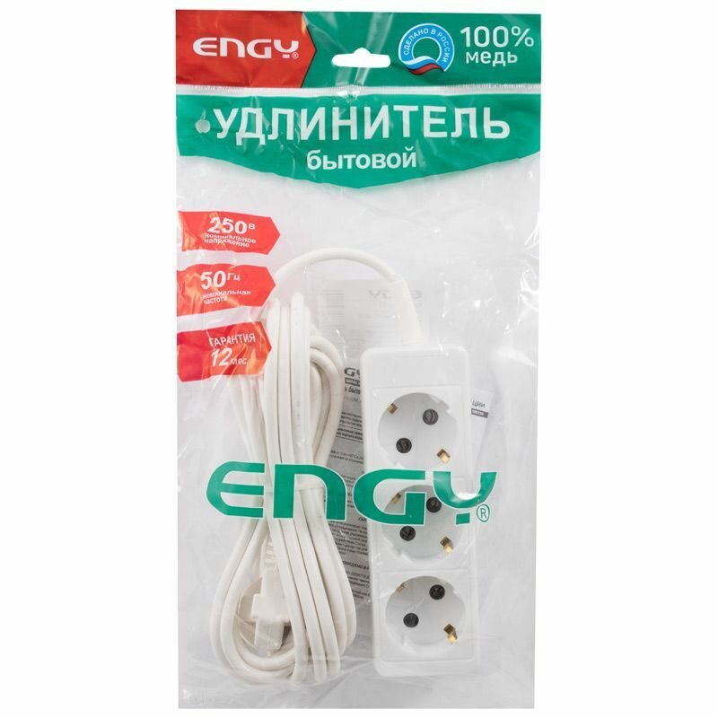 Удлинитель "ENGY гранд" 5 М, 3 розетки С заземл. (ПВС 3 Х 0,75), белый информация:
