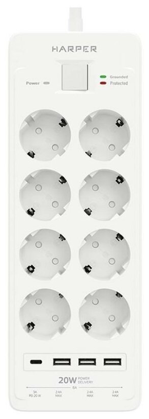 Сетевой фильтр с USB зарядкой HARPER UCH-440 Белый PD3.0