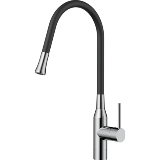 Смеситель для кухни OMOIKIRI Yatomi-BN-BL с гибким изливом / черный шланг / нержавеющая сталь