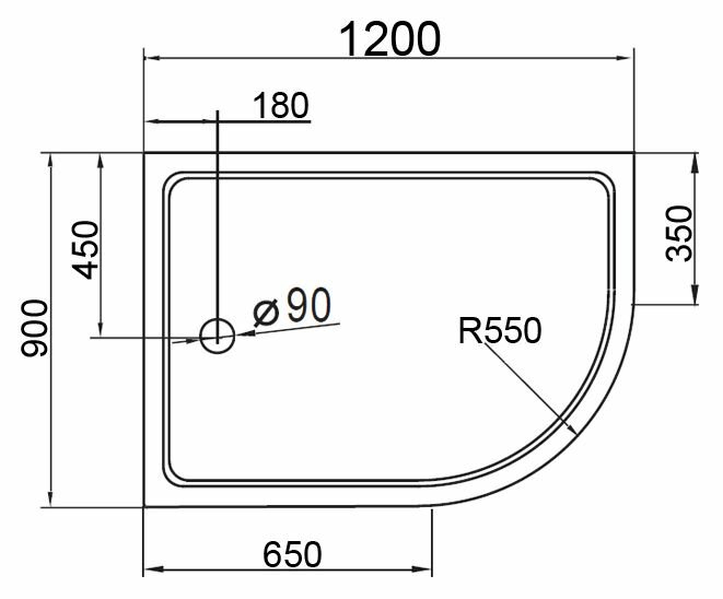 Поддон для душа акриловый Cezares Tray TRAY-A-RH-120/90-550-15-W-R радиальный R информация:
