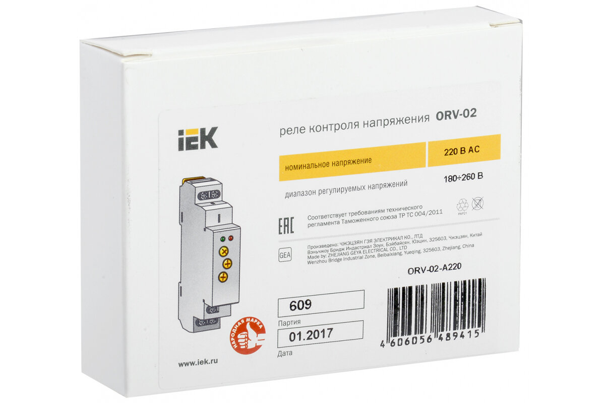 Реле контроля напряжения ORV IEK, ORV-02-A220, однофазное, 220V AC информация: