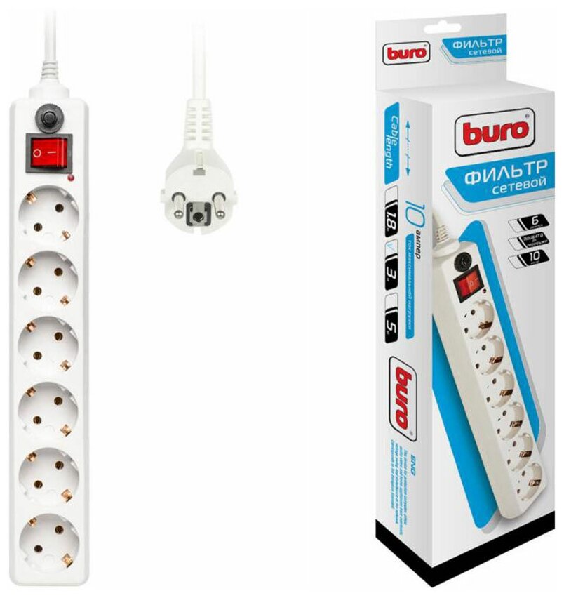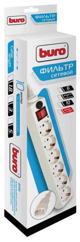 10 цен на Сетевой фильтр BURO 600SH-1.8-UPS-W розетка ИБП белый, 6гн, 1,8м, выключатель
