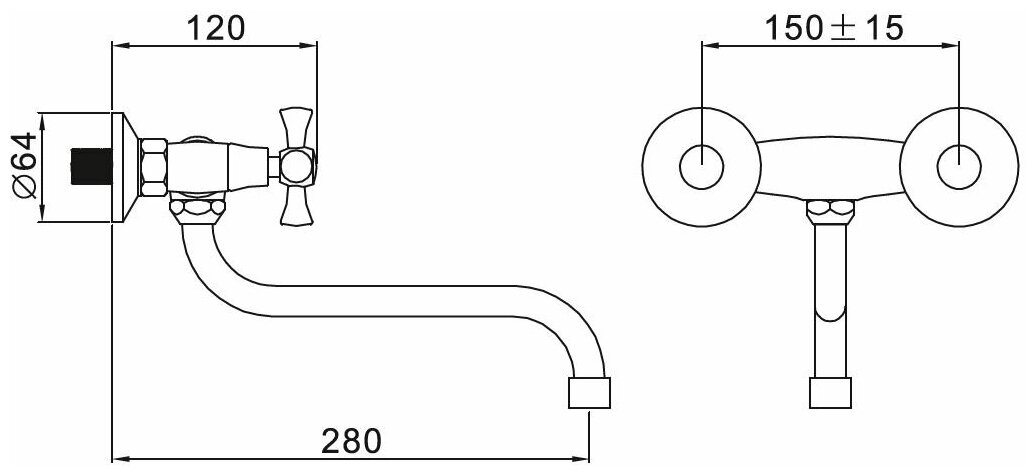Смеситель на раковину настенный Эверест B46-350 с круглым поворотным изливом, кран-буксы 1/2", хром