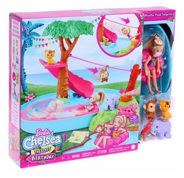Набор игровой Mattel Barbie Челси с питомцами в джунглях, GTM85 голубой информация: