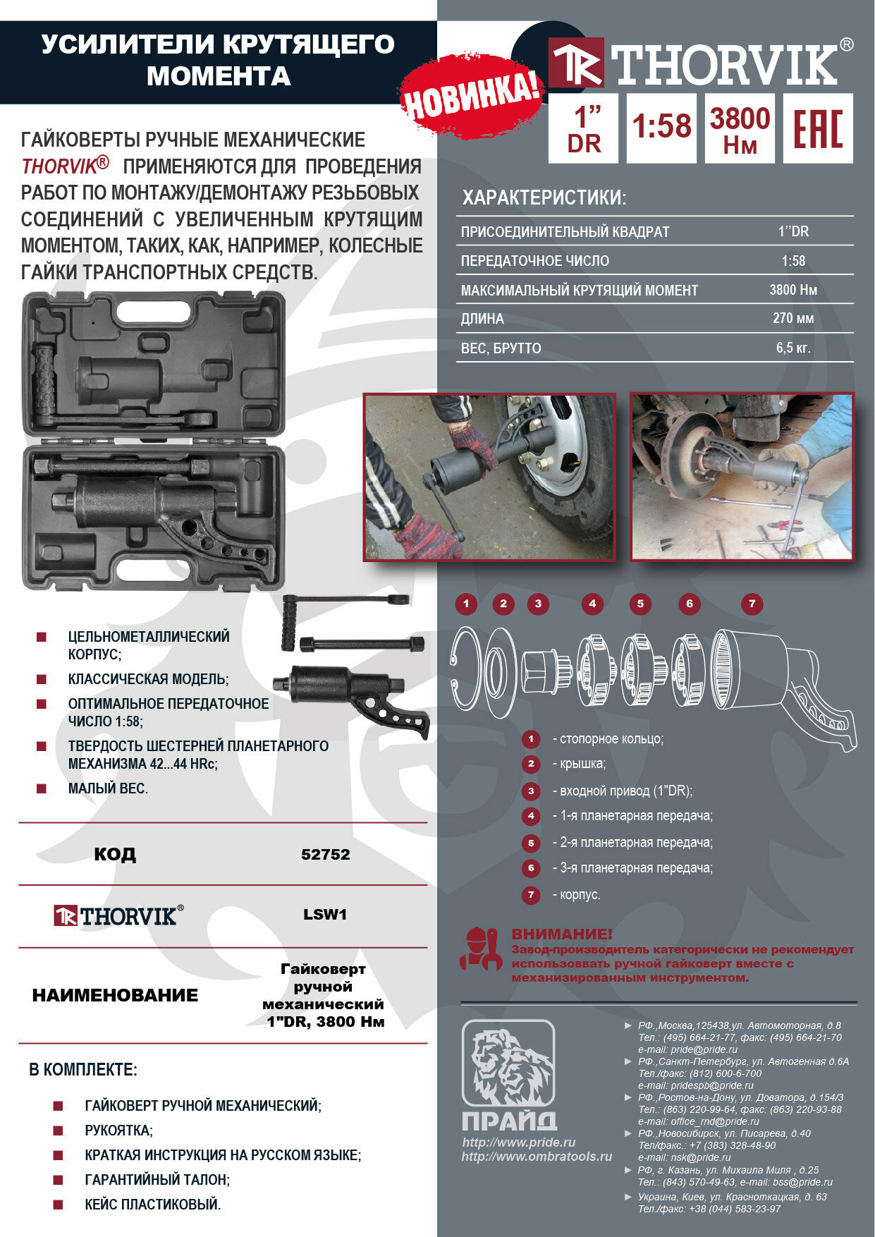 Гайковерт ручной механический 1"DR, 3800 Нм THORVIK LSW1 информация: