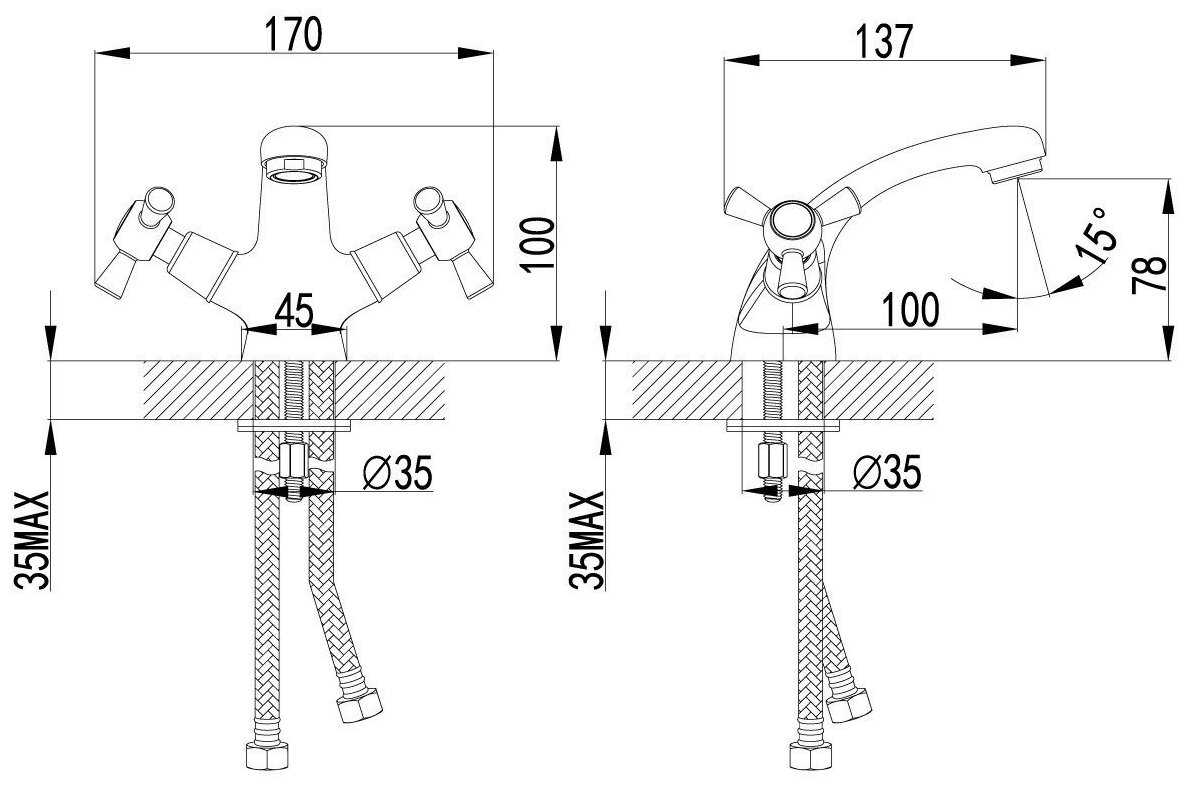 Смеситель для умывальника LM7406C "CONTOUR"монолитный, хром, латунь