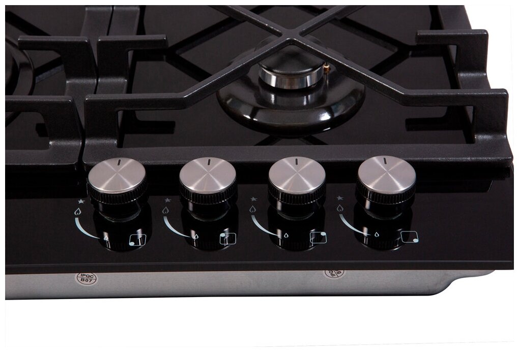 Встраиваемая панель газовая Zigmund&Shtain M 23.6 B /черн, стеклокерамика, 4 конф., чугун. решетки/Китай