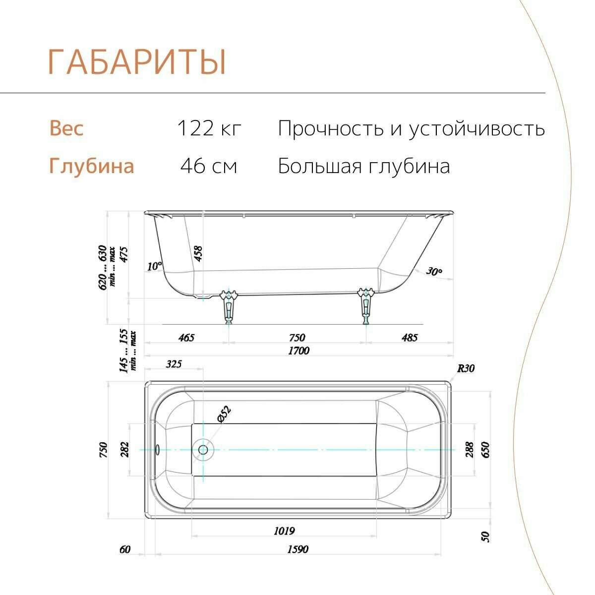 | Подробная комплектация | ванна, комплект ножек, комплект ручек, гарантийный талон с инструкцией |