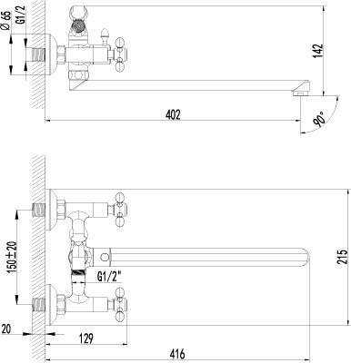 Смеситель для ванны Виста lm7651c с плоским поворотным изливом 300мм хром