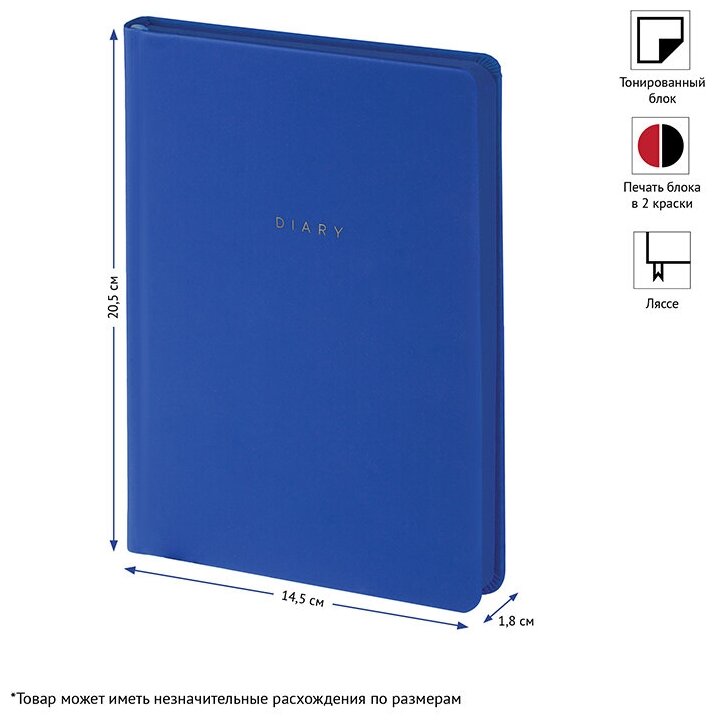 Ежедневник недатированный A5 OfficeSpace "Grace" (160 листов) обложка кожзам, синий, цветной срез (ENA5_32571) информация: