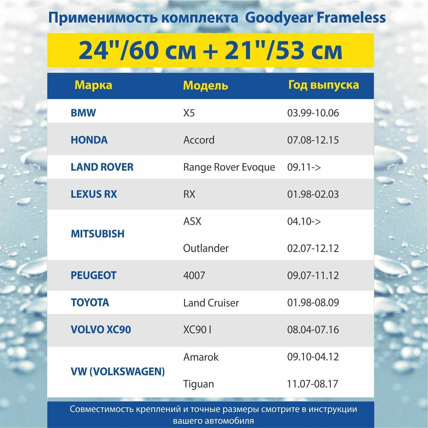 Отзывы на 2 щетки стеклоочистителя /дворники для автомобиля/ GOODYEAR (60см+53см) TOYOTA Land Cruiser (98-09), VW Tiguan (07-17)