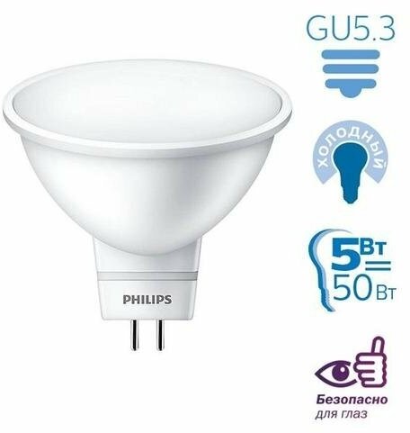 Отзывы на Светодиодная лампа Philips Essential LED MR16 5-50W/865 100-240V 120D 400lm .