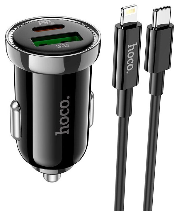 Автомобильное ЗУ Hoco Z44 Leading PD20W+QC3.0 (с кабелем Type-C/Lightning), черный информация: