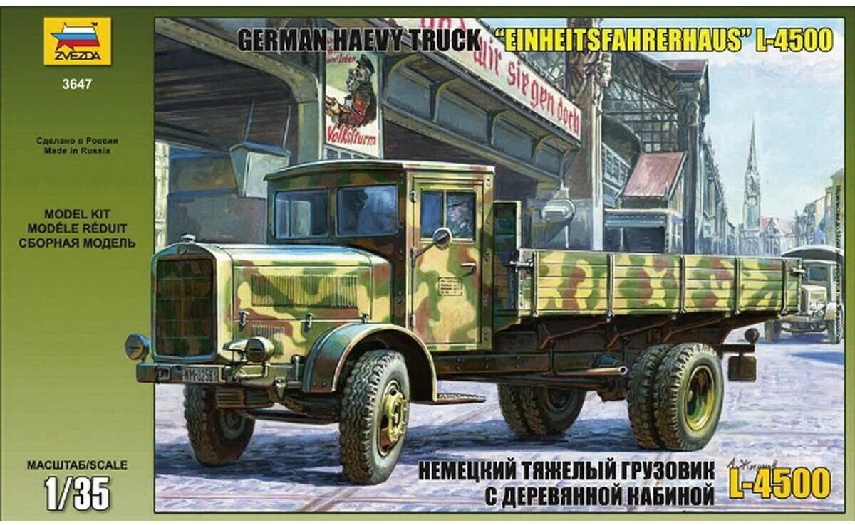 Сборная модель ZVEZDA Немецкий тяжелый грузовик L 4500A времен Второй Мировой Войны (3596) 1:35
