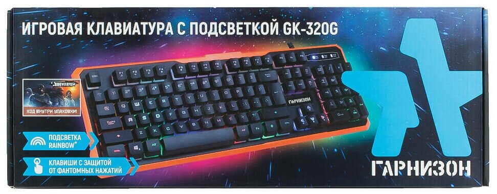 Гарнизон Клавиатура игровая GK-320G черный USB, подсветка, код "Survarium", антифантомные клавиш 2 207 ₽