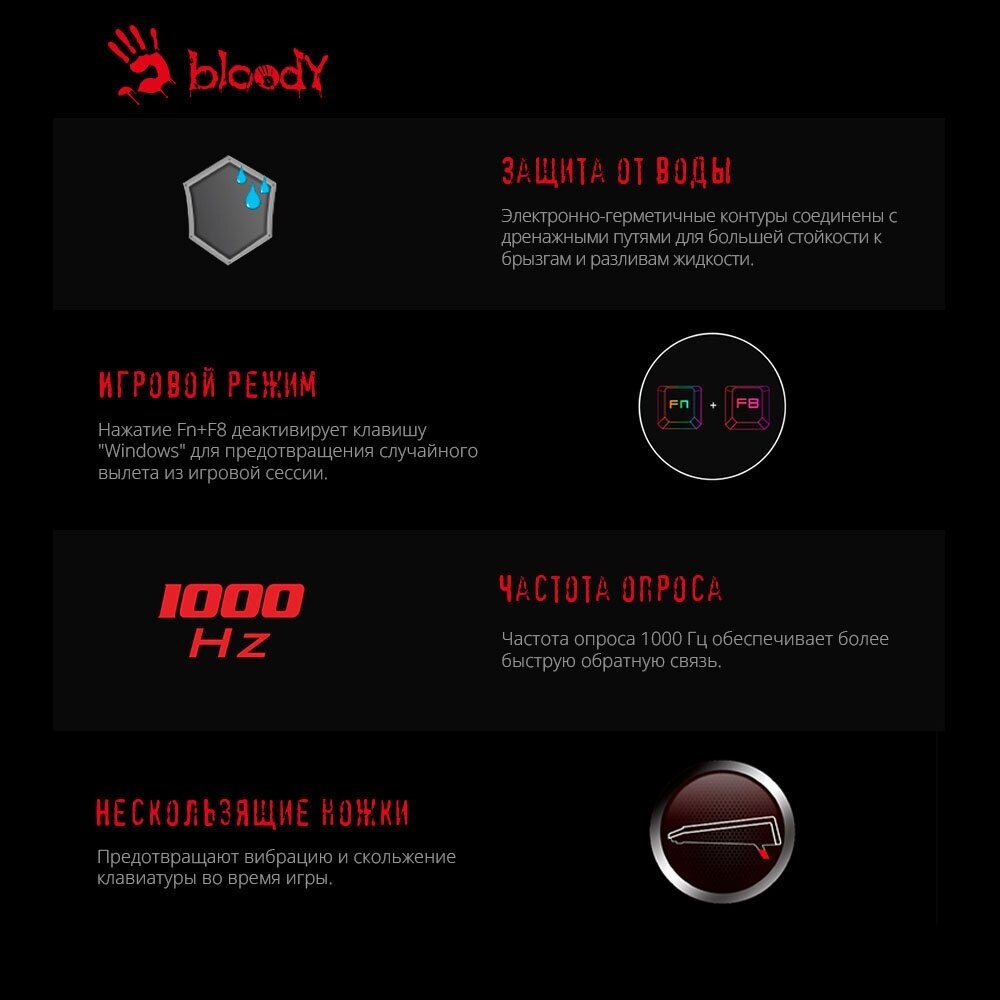 Игровая клавиатура Bloody, черный, кириллица+QWERTY, с подсветкой, мембранная