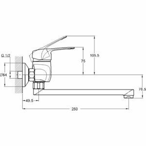 Смеситель на раковину настенный Эверест B46-350 с круглым поворотным изливом, кран-буксы 1/2", хром