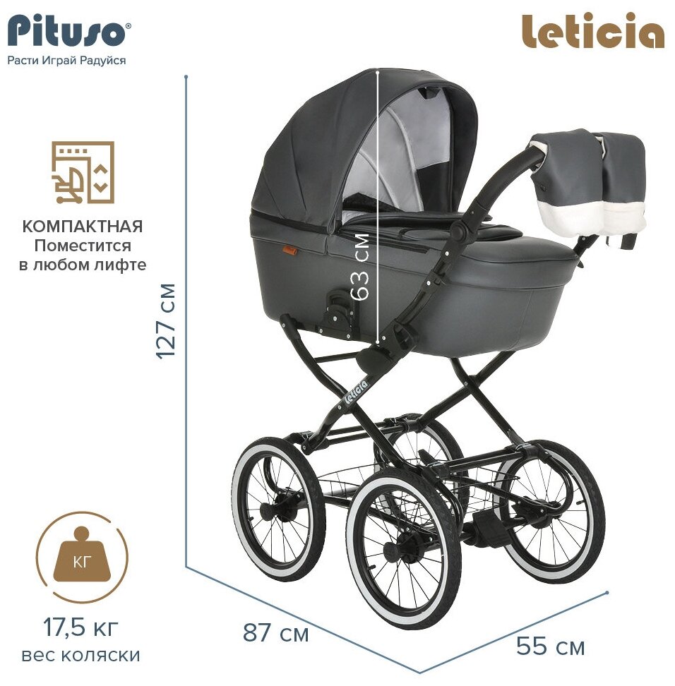 10 цен на Коляска Pituso Leticia Classic Кожа Antracyt (колеса 14d)