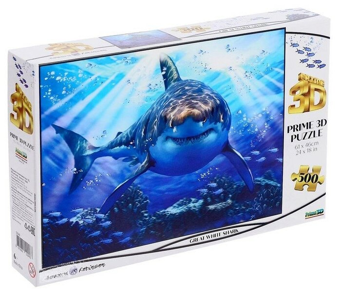 Prime 3D Пазл Super 3D 500 элемент. 10048 «Большая белая акула» лиц. Howard Robinson