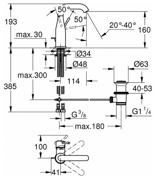 Смеситель для умывальника Grohe Essence 23462AL1 U, сливной гарнитур