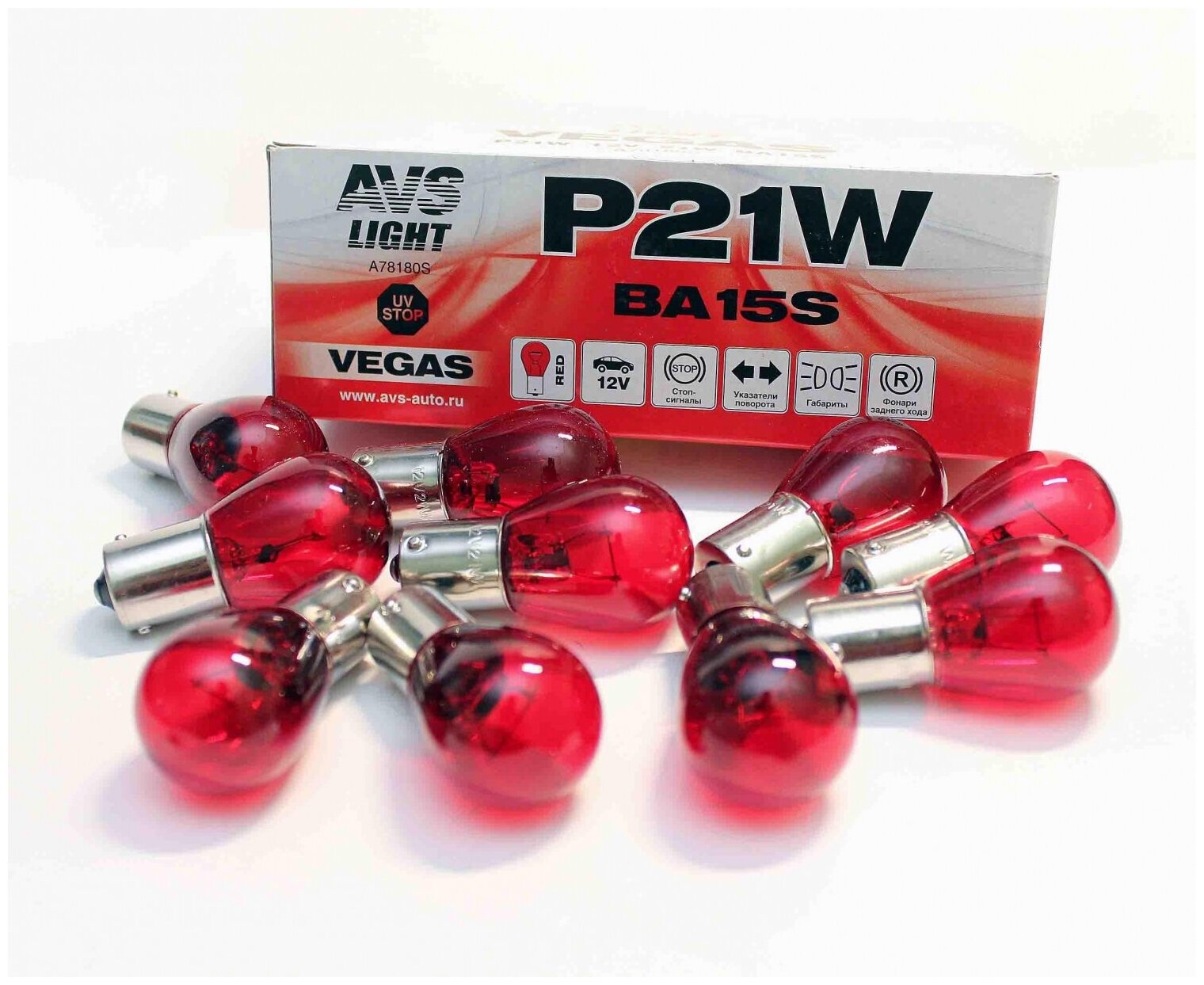 10 цен на Лампа AVS Vegas 12V. P21W(BA15S) "red" BOX 10шт.