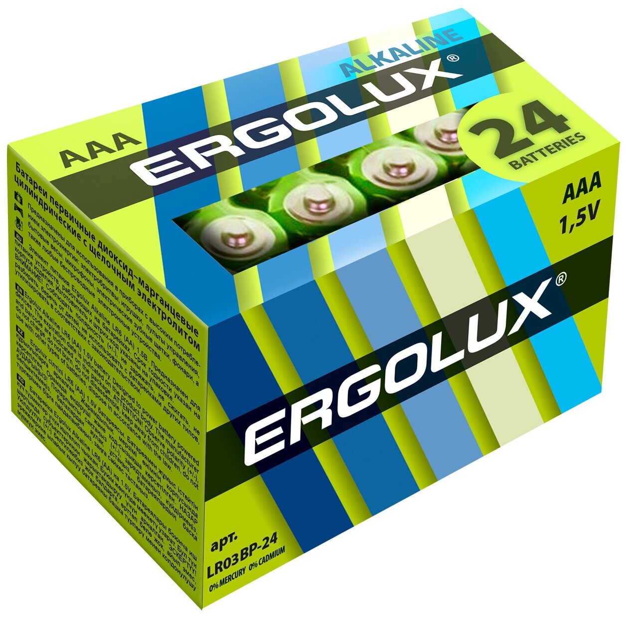 Батарейки щелочные Ergolux - тип AAA, 1.5В, 24 шт. в упаковке информация: