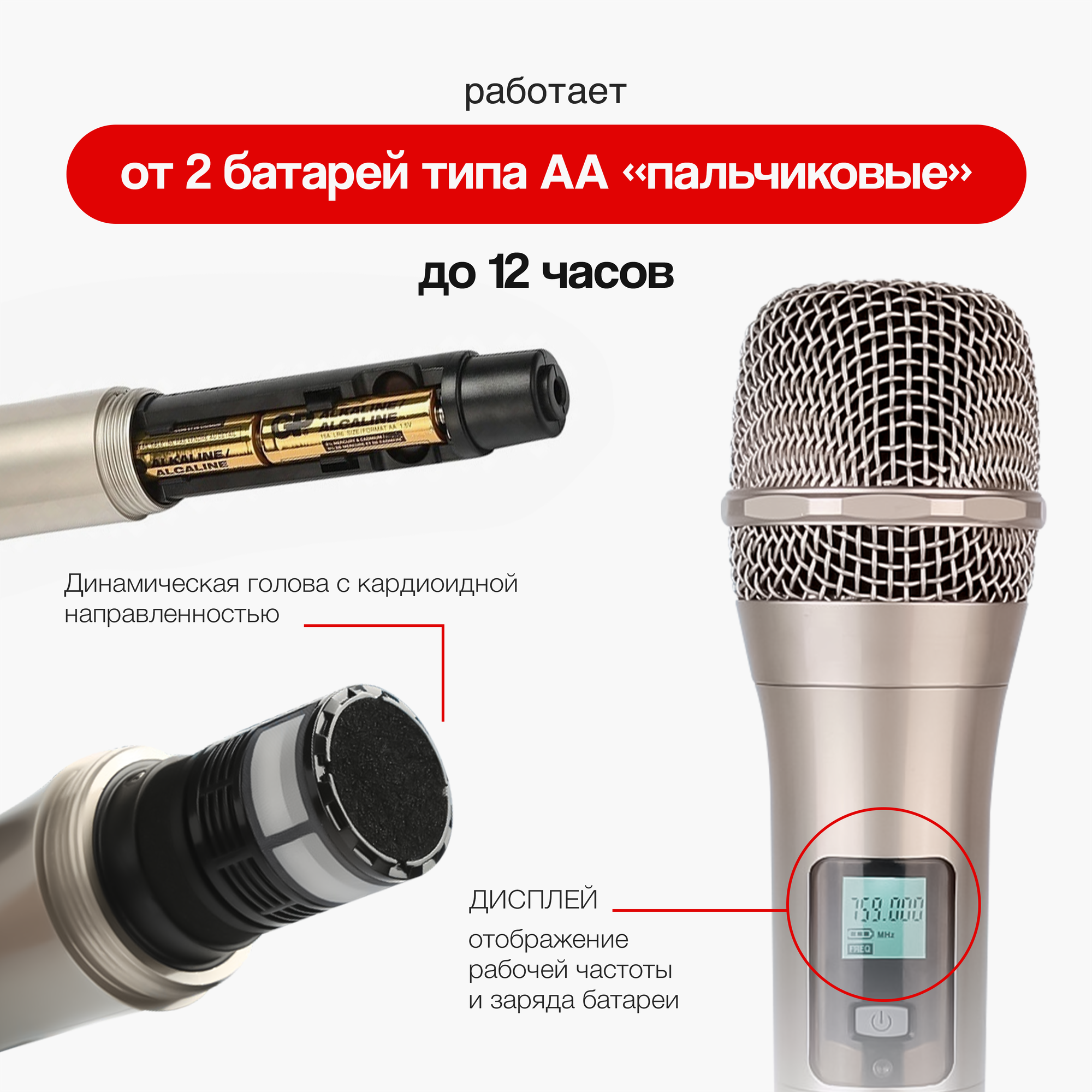 Беспроводной микрофон для живого вокала и караоке NOIR-audio NX 200 с двумя ручными микрофонами