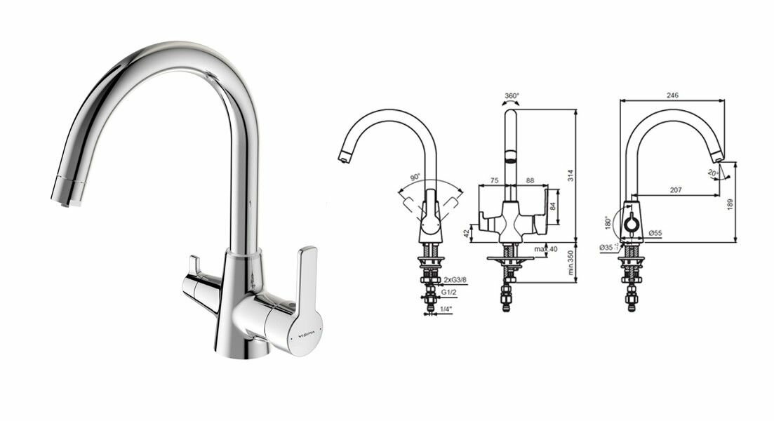 Смеситель для кухни (мойки) VIDIMA Уно BA356AA