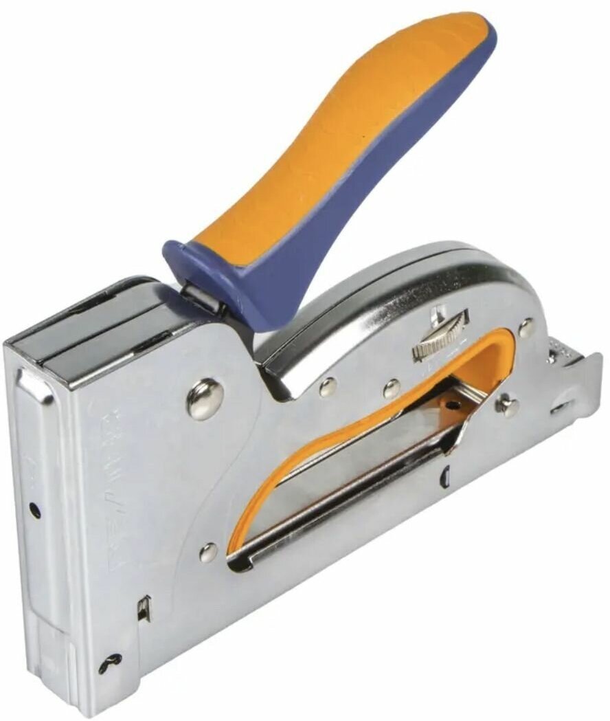 Степлер строительный NAGAN тип 53, скобы 4-14 мм металлический, регулировка удара, двухкомпонентная рукоятка