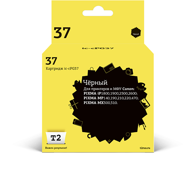 T2 Расходные материалы PG-37 Картридж IC-CPG37 для Canon PIXMA iP1800 1900 2500 2600 MP140 190 210 220 470 MX300 310, черный информация: