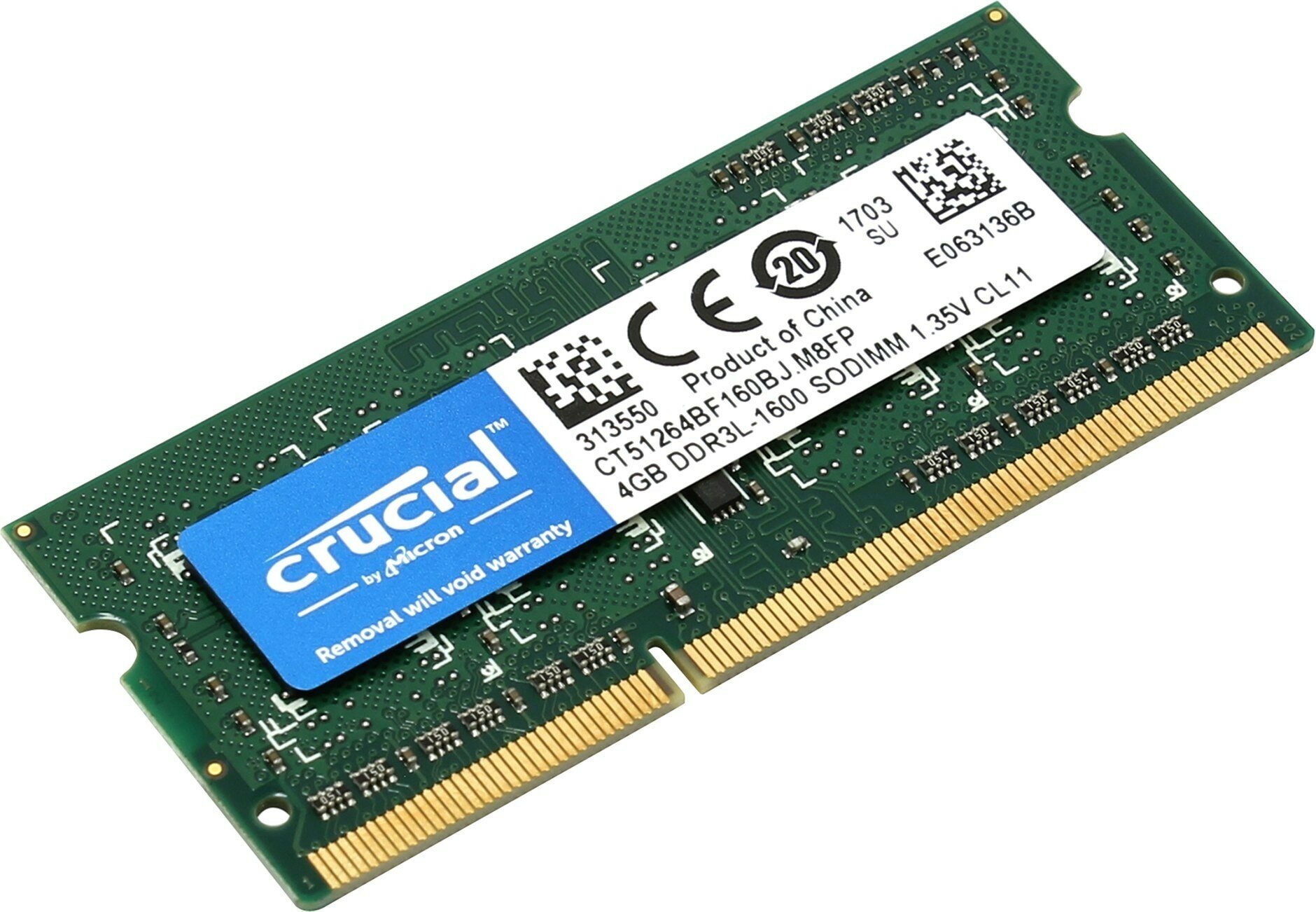Оперативная память Crucial 4 ГБ PC3L (DDR3L) 1600 МГц SODIMM CL11 CT51264BF160BJ информация: