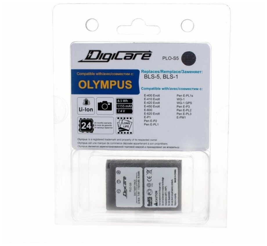 10 цен на Аккумулятор DigiCare PLO-S5 / Olympus BLS-5 / BLS-1 для PEN E-p3, E-pl2, E-pl3, E-PM1 .