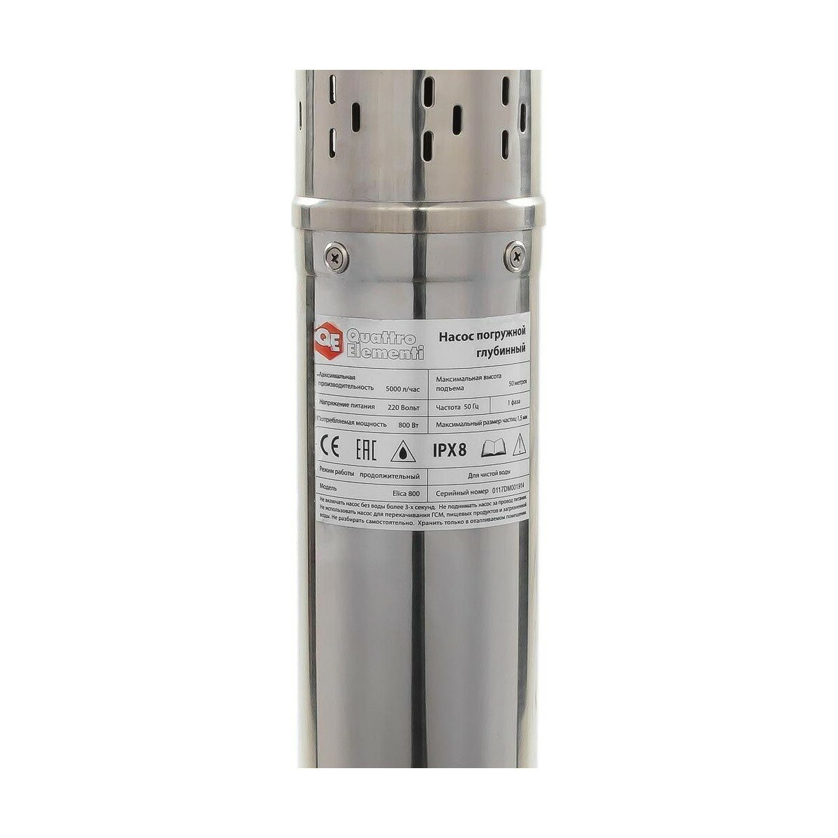 Глубинный насос QUATTRO ELEMENTI ELICA 600 (600 Вт, 3600 л/ч, для чистой, 50 м, 9.4 кг, нерж.корпус,