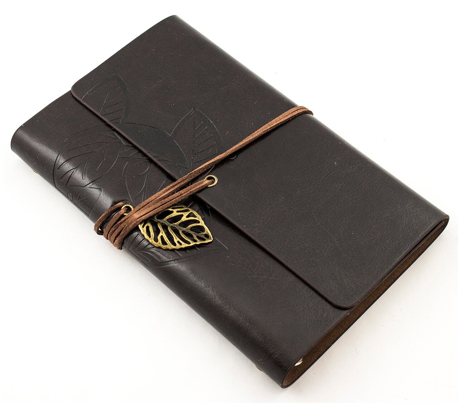 Блокнот, записная книжка, ежедневник, тетрадь на кольцах, со сменным блоком, крафт страницы, экокожа Эврика (Листья 12х18 см, темно-коричневый) подарок мужчине на 23 февраля, коллеге, мальчику, парню, женщине на 8 марта, девушке, женщине, девочке