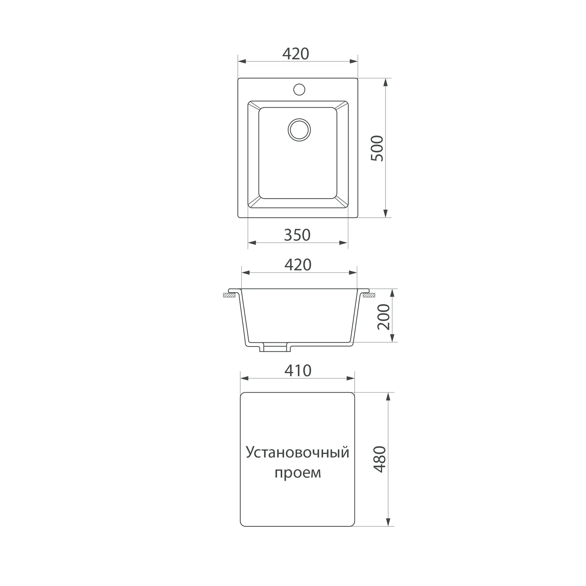 Мойка для кухни GreenStone GRS-17-310, врезная, 415 x 490 мм, серая 4 649 ₽