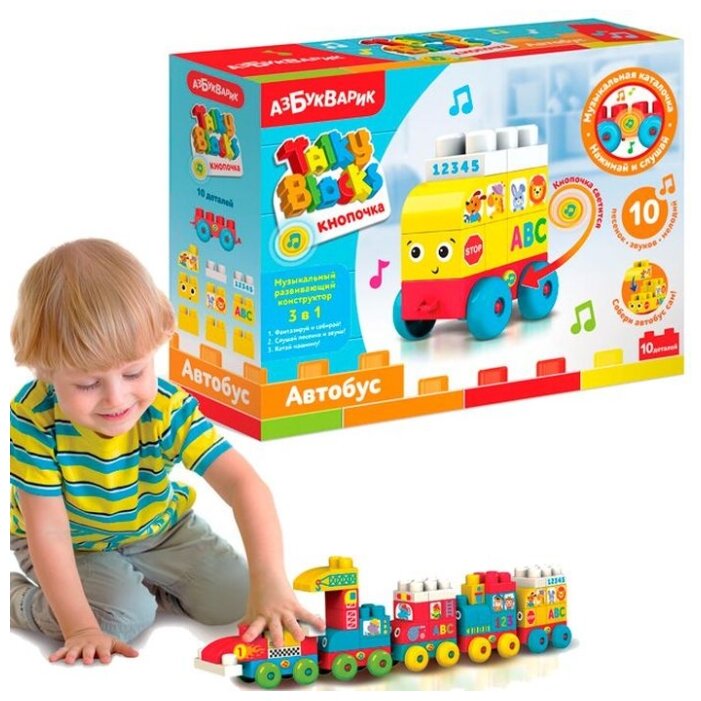 10 цен на Азбукварик Музыкальный конструктор Talky blocks кнопочка Автобус