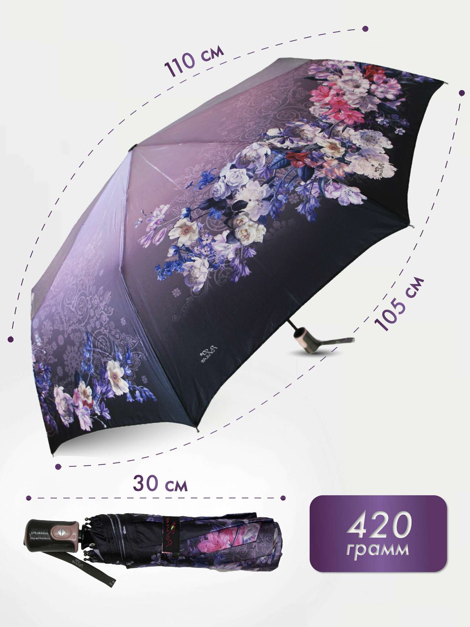 Зонт женский автомат, зонтик взрослый складной антиветер 1290, черный,аметистовый 996 ₽