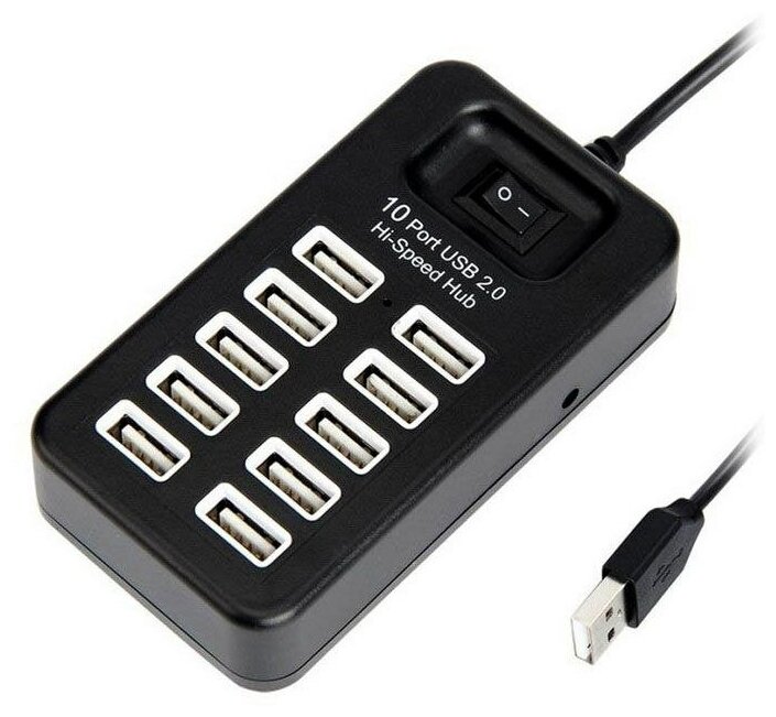 10 цен на Высокоскоростной USB HUB/ 10 USB портов 2.0 с кабелем 1м с выключателем питания/ 480 Мбит/ Дисконт 63
