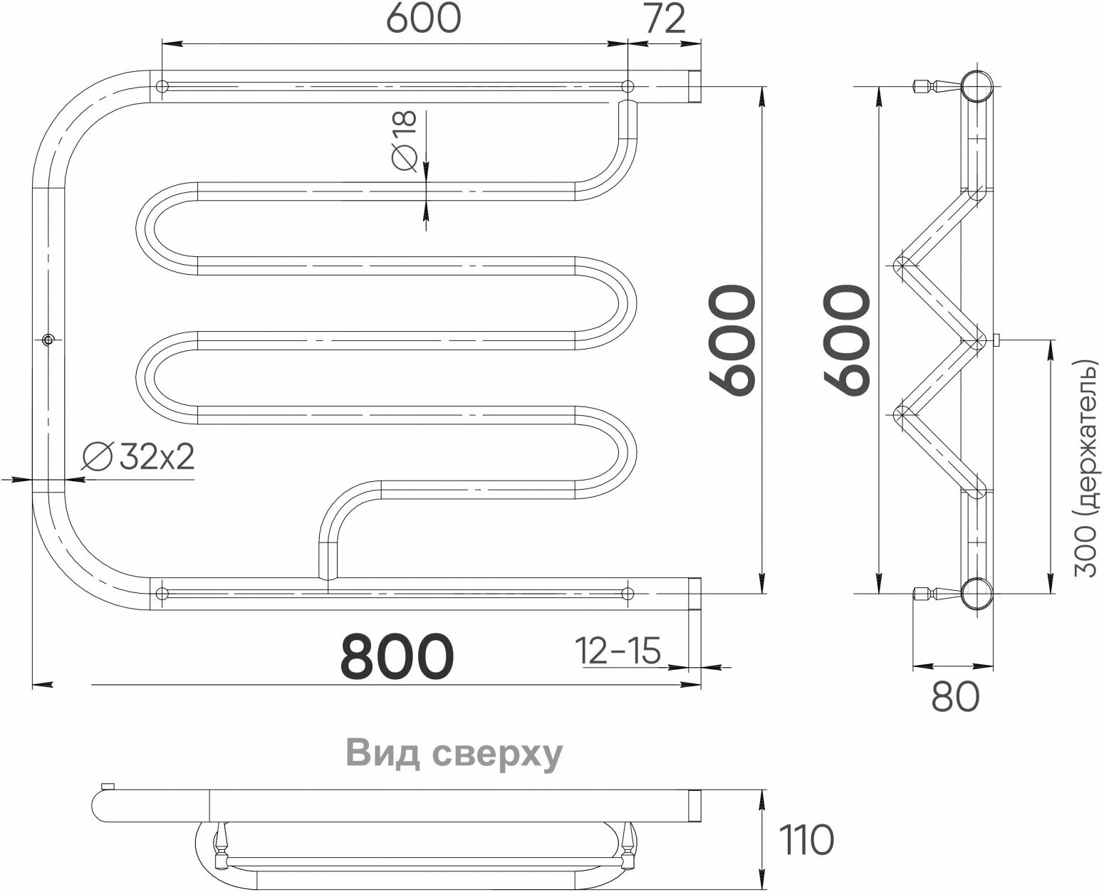 Полотенцесушитель Indigo® INDIGO FLW60-80P Фокстрот Liana с/п (н.р.1") 60/80 с держателем