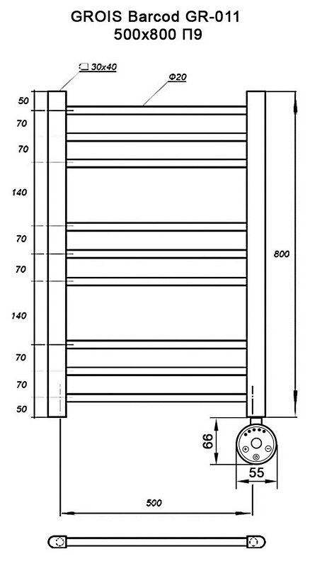 Полотенцесушитель GROIS Grois Barcod GR-011 500х800 П9 (3+3+3) RAL9003 белый матовый, без ТЭНа информация: