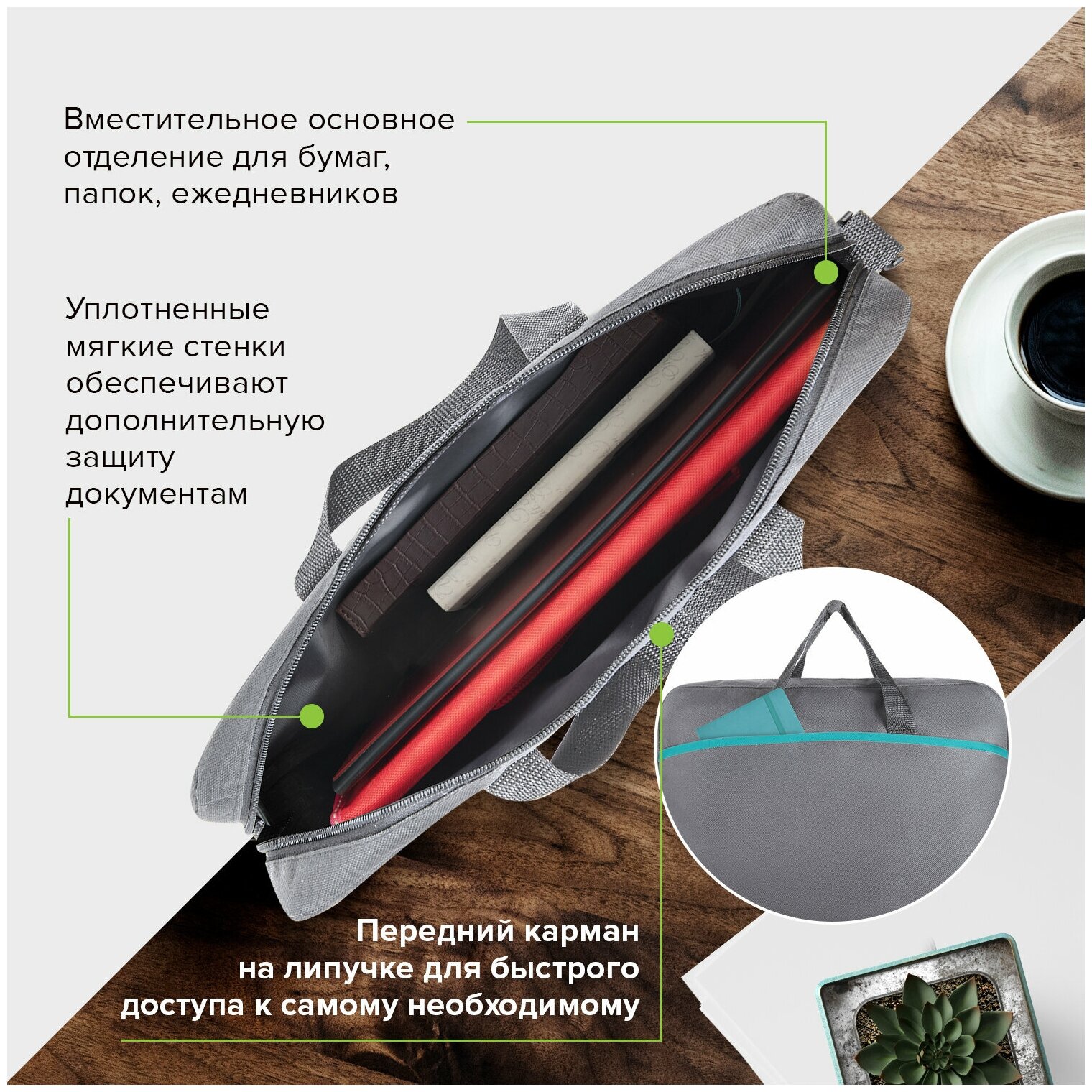 Отзывы на Сумка для документов Staff Manager, с карманом, полиэстер, серо-бирюзовая (270837)