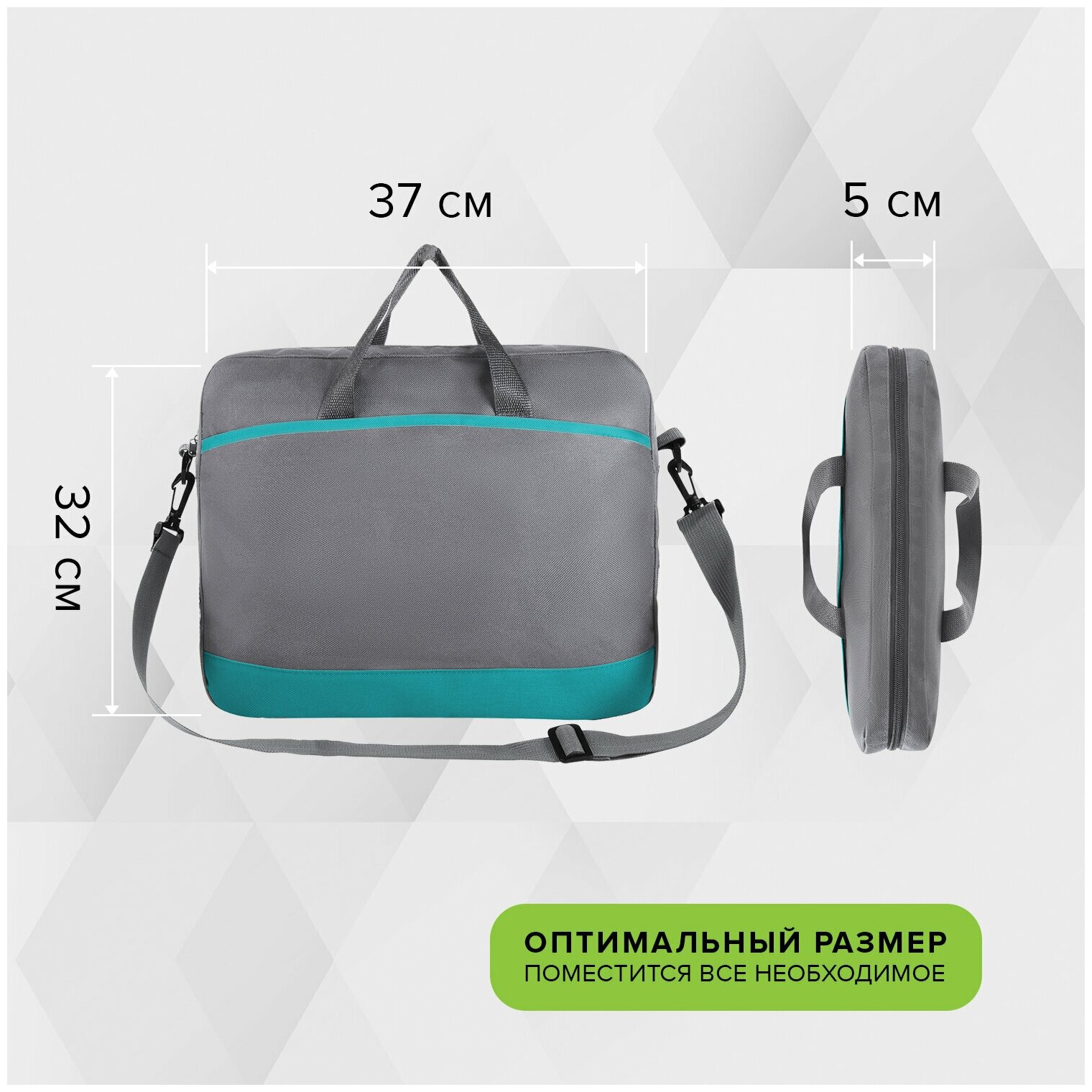 Сумка деловая STAFF Сумка для документов Manager на молнии с карманом, полиэстер, серо-бирюзовая, 37х32х5см, 270837