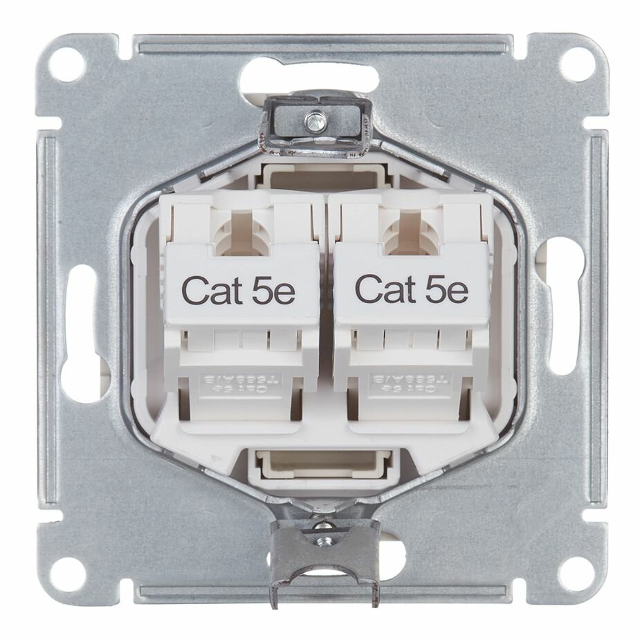 Розетка компьютерная двойная RJ45+RJ45 Schneider Electric AtlasDesign, механизм, категория 5E, цвет Сталь