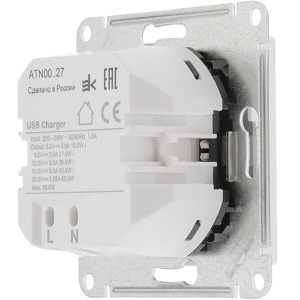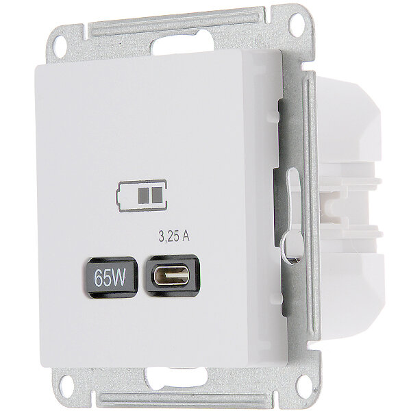 ATLASDESIGN USB розетка тип-C 65W высокоскор.заряд. QC, PD, механизм, белый