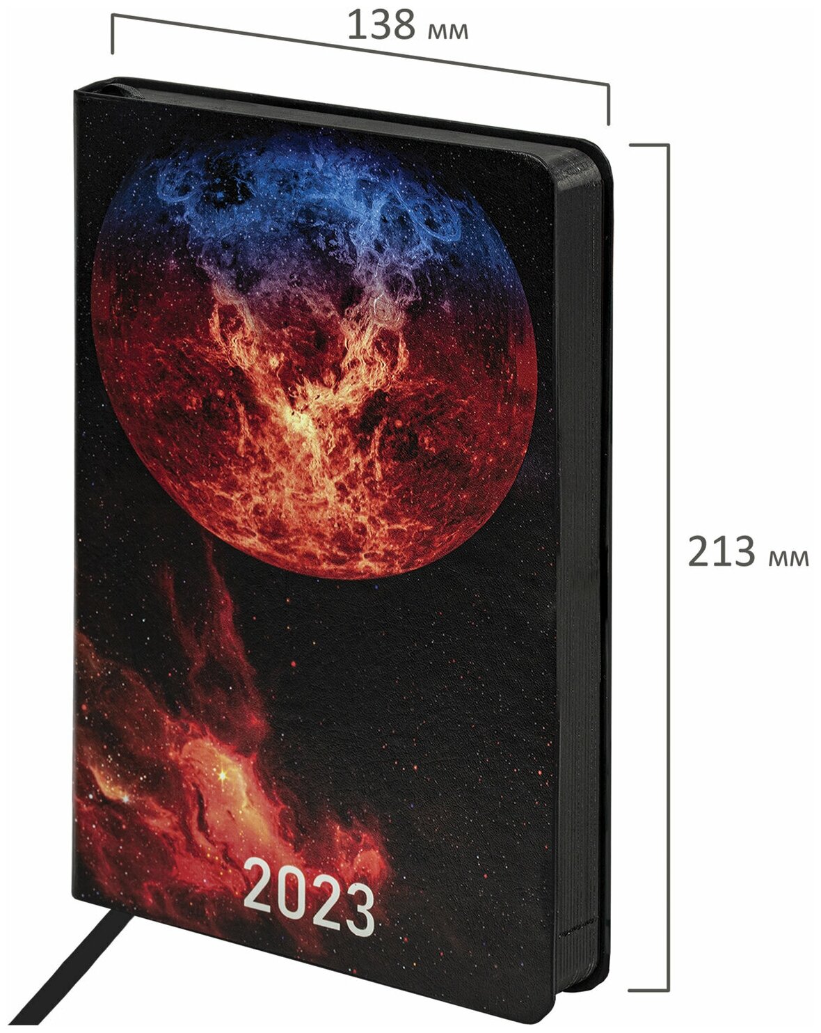 Ежедневник датированный 2023 А5 138x213 мм BRAUBERG "Vista", под кожу, гибкий, "SpaceX", 114127 114127