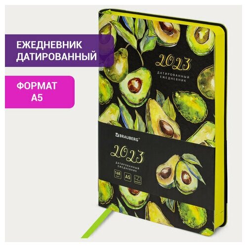 Ежедневник датированный 2023 А5 138x213 мм BRAUBERG "Vista", под кожу, гибкий, "Lemon Story", 114126